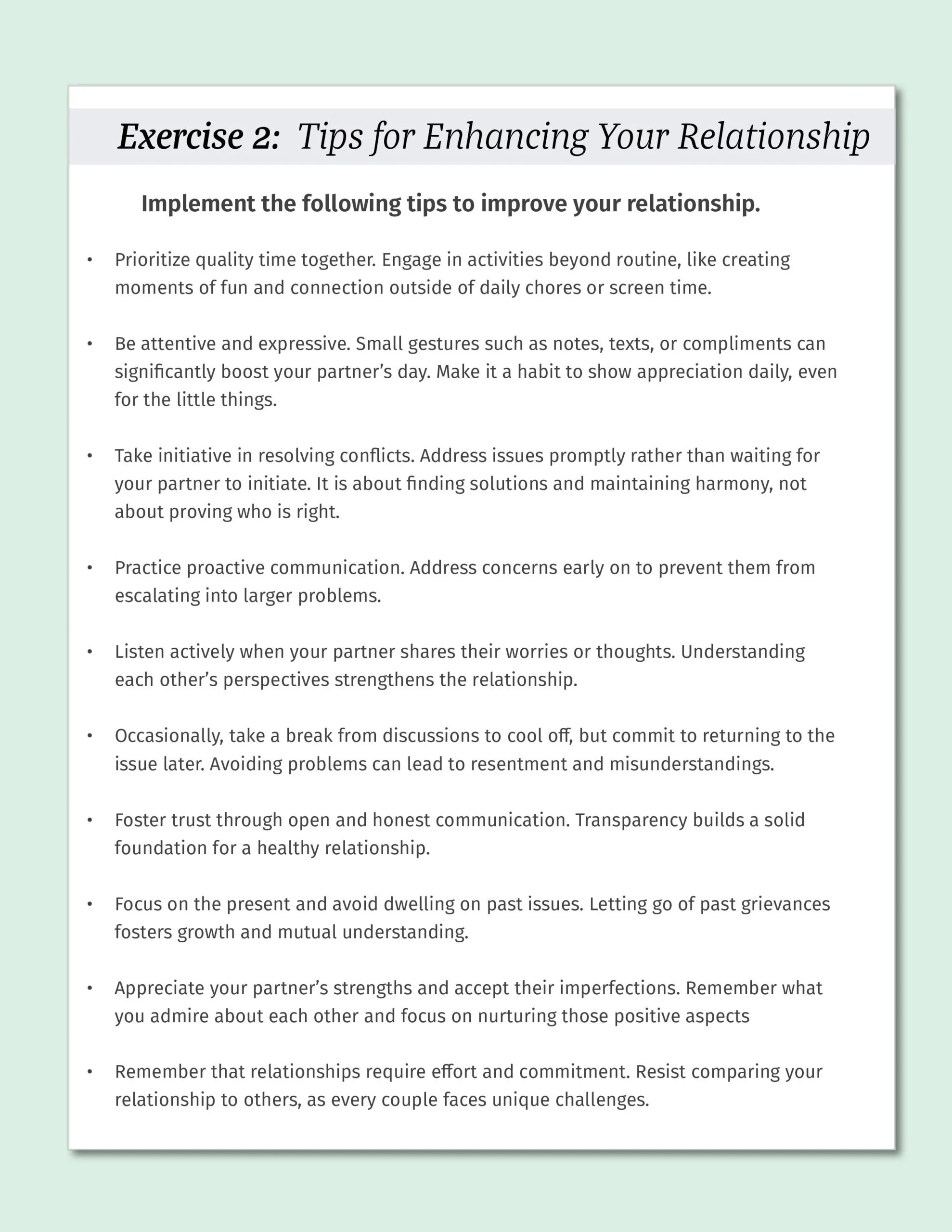 Conflict Resolution: Develop strategies to manage conflicts productively and reduce negative interaction patterns.